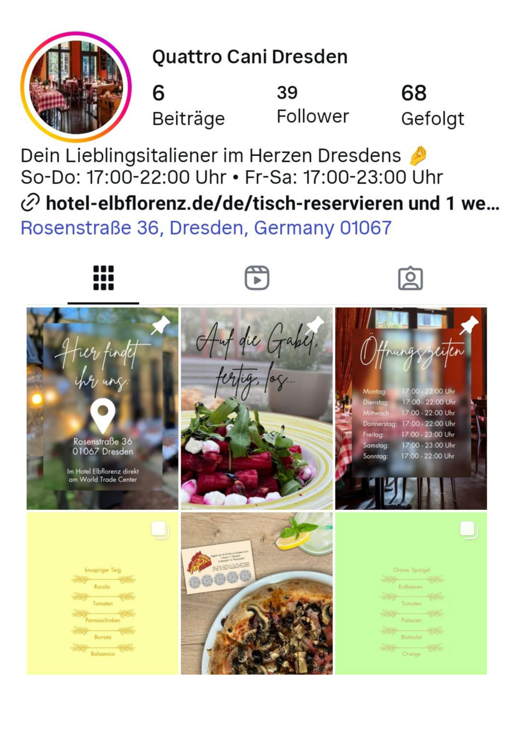 Im Restaurant Quattro Cani Dresden servieren wir Ihnen täglich hausgemachte Pizza aus dem Steinofen, schmackhafte Pasta und raffinierte Fleisch- und Fischgerichte mit ausgewählten Weinen aus dem schönen Italien.